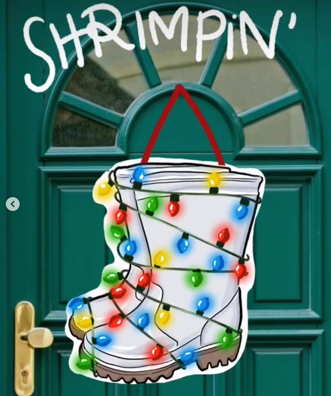 Christmas Lights Shrimp Boots Christmas Door Hanger