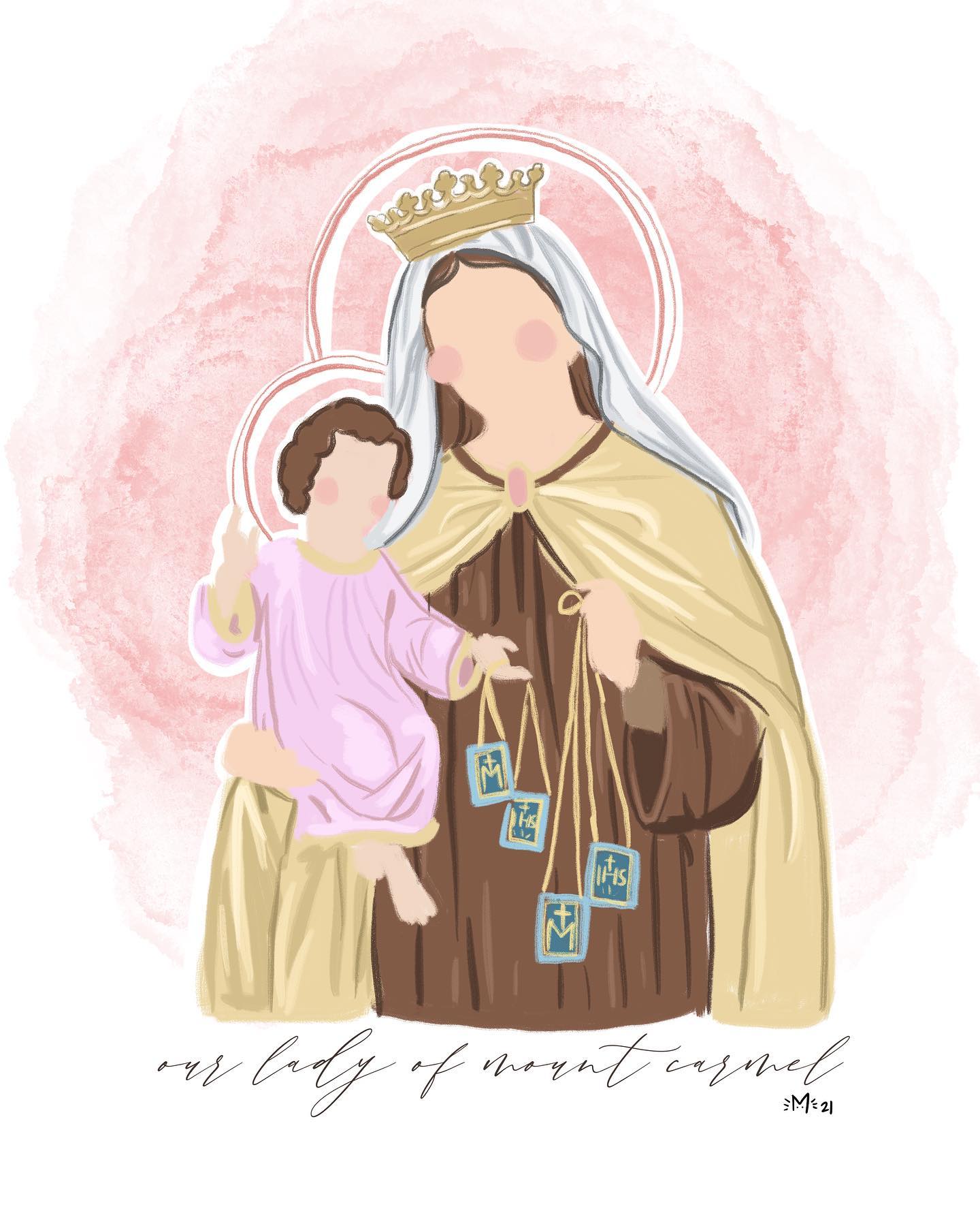 Our Lady of Mount Carmel Hand Illustrated Print